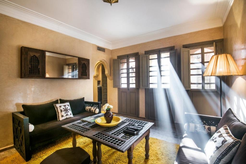 The most spacious accommodations in Almaha, these generous suites on the first floor, designed by Charles Kaisin, have direct access to their private terraces and large separate lounges with semi-circular fireplaces. The rooms are adorned with beautiful sculpted stucco, feature oversized double beds with inlaid wooden headboards, and have en-suite bathrooms with marble bathtubs, rainfall showers, and twin sinks.
